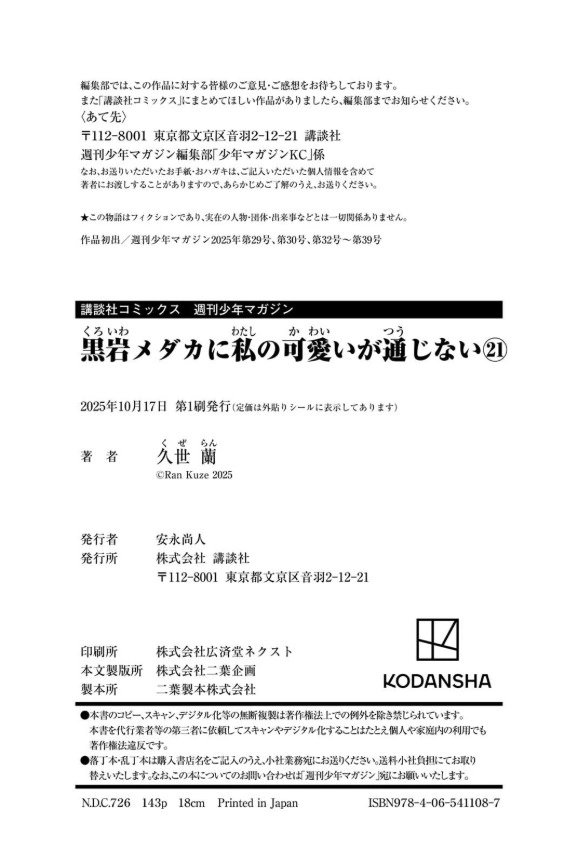 黒岩メダカに私の可愛いか通じない 21巻