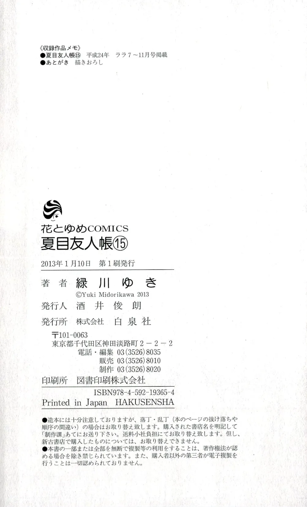夏目友人帳 15巻