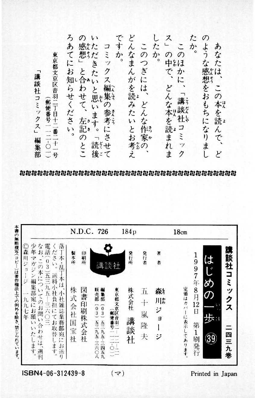 はじめの一歩 039巻