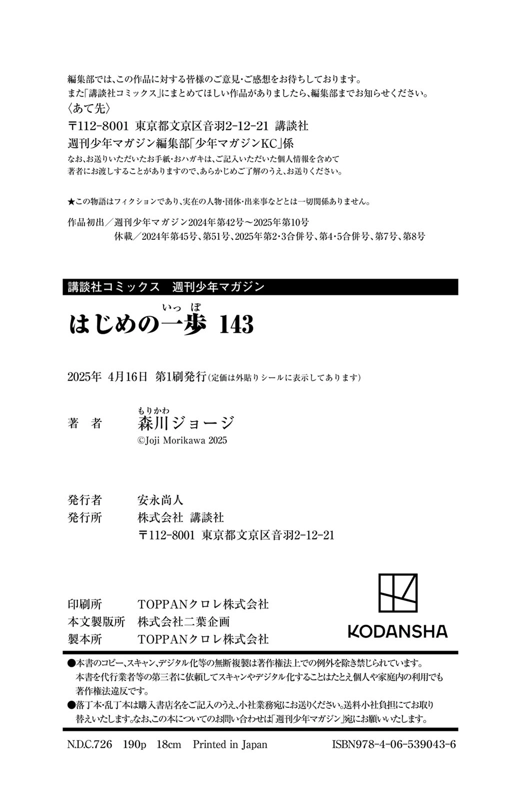 はじめの一歩 143巻
