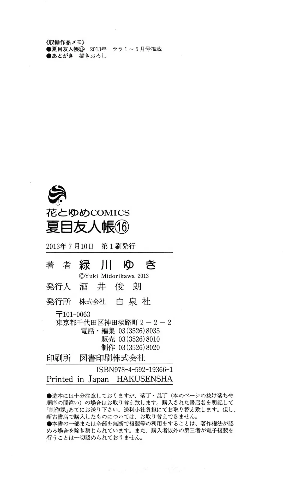 夏目友人帳 16巻