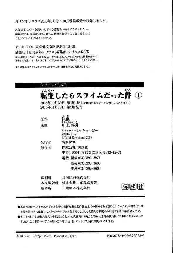 転生したらスライムだった件 01巻