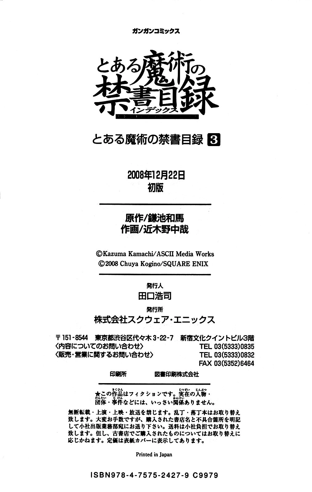 とある魔術の禁書目録 03巻
